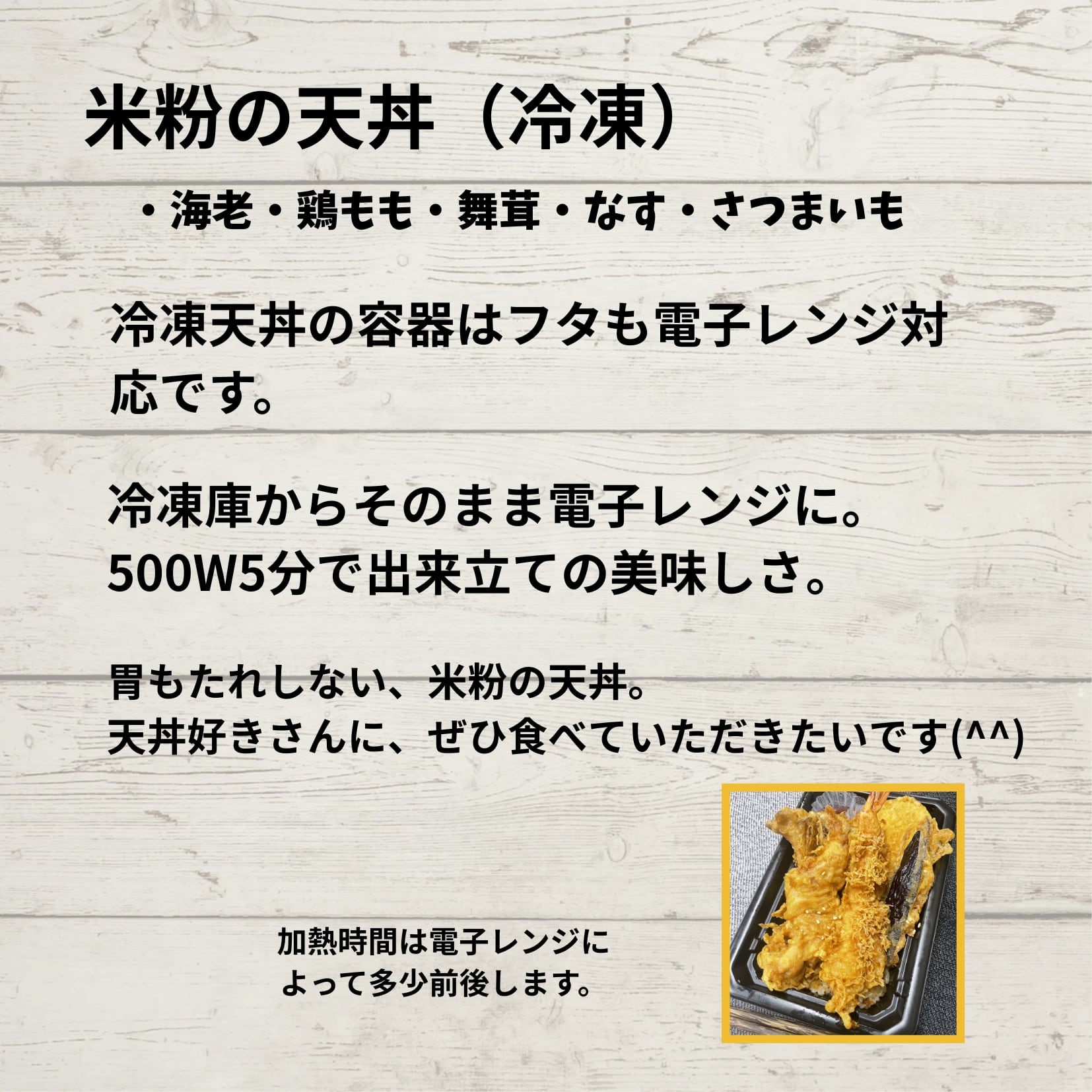 電子レンジで5分で食べられる【冷凍天丼】です。